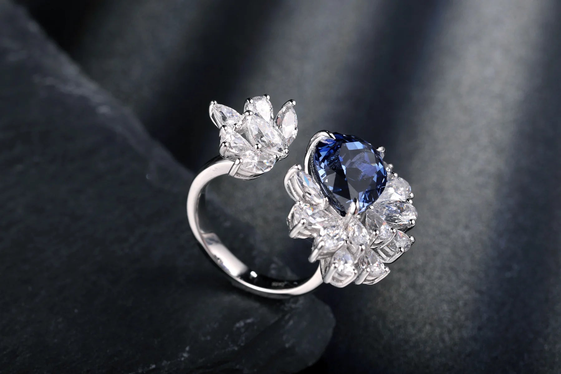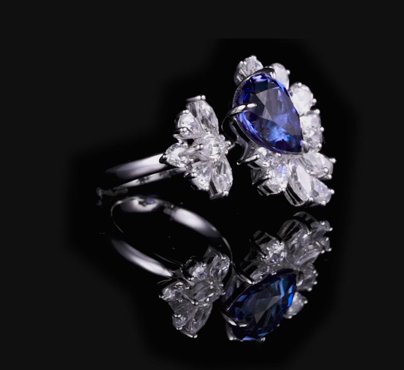 - Material: 18K Gold, 5ct Pear-shaped Sapphire with Approximately 9ct D Colour VS1 Multi-shaped Lab Grown Diamond